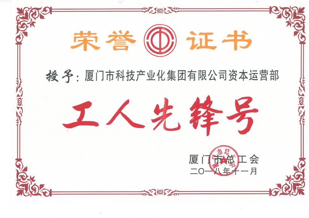 11月6日,廈門市總工會授予集團資本運營部“工人先鋒號”榮譽稱號。