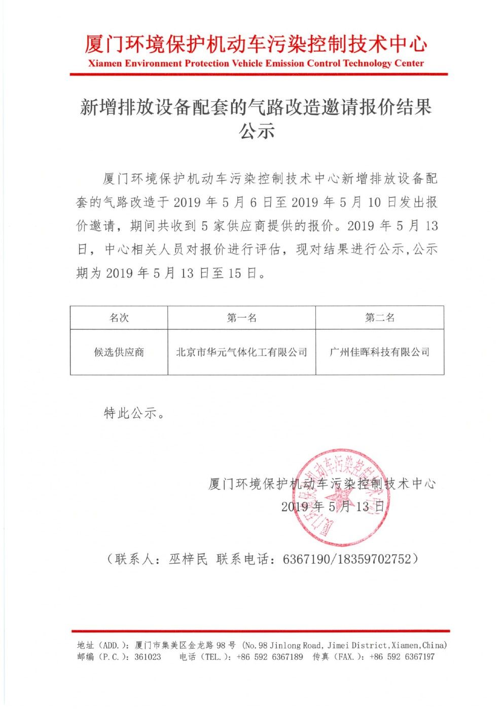 新增排放設(shè)備配套的氣路改造邀請(qǐng)報(bào)價(jià)結(jié)果公示 欄目:通知公告 來源:廈門科技產(chǎn)業(yè)化集團(tuán) 時(shí)間:2019-05-13 熱度:416