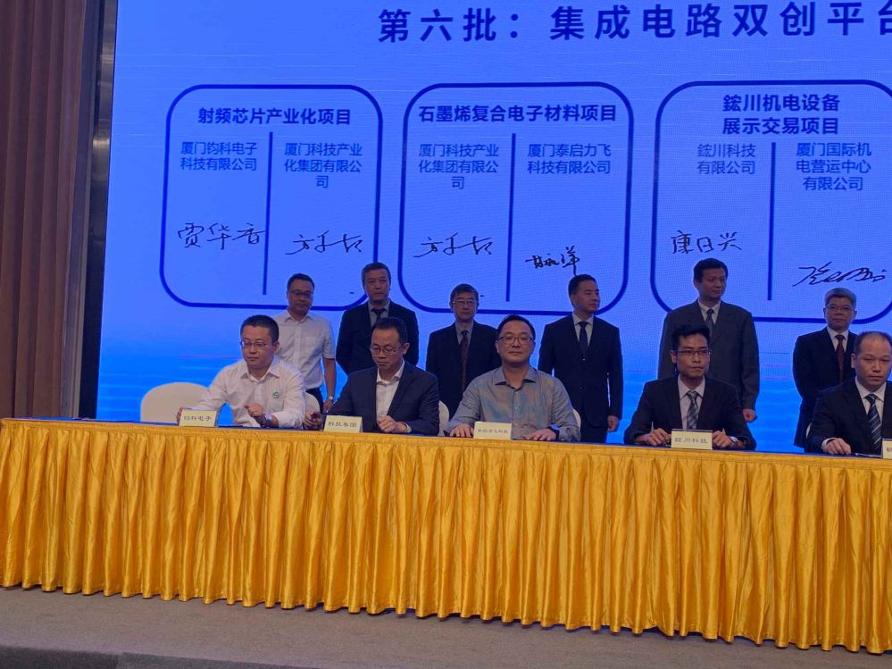 9月9日,由廈門市人民政府主辦,中國(福建)自貿試驗區(qū)廈門片區(qū)管委會、廈門市科技局、廈門市商務局承辦,廈門市臺港澳辦、廈門市集成電路行業(yè)協(xié)會、廈門自貿區(qū)等單位協(xié)辦的2019廈門自貿片區(qū)發(fā)展機遇說明會成功舉行。會上,科技集團與廈門鈞科電子科技有限公司、廈門泰啟力飛科技有限公司簽署了入駐集成電路萬翔基地合作框架協(xié)議??萍技瘓F謝勇堅董事長作為簽約見證人出席,集團常務副總方永松、鈞科電子賈華香總經理助理、泰啟力飛甘秋洋董事長作為簽約代表出席簽約活動。