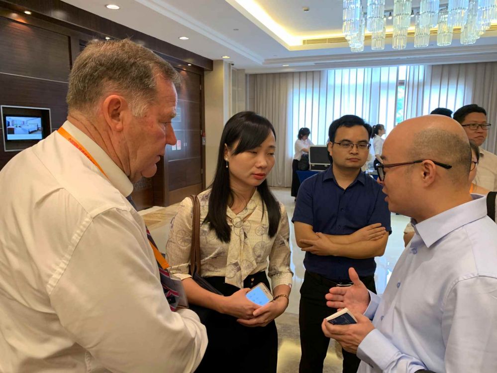 在廈門自貿片區(qū)推介環(huán)節(jié),科技集團IC服務平臺主任黃建寶做了題為“自貿創(chuàng)‘芯’——集成電路雙創(chuàng)平臺”精彩的主題演講,從產業(yè)環(huán)境、流片保稅試點、平臺建設、配套政策等四個方面進行推介。會后,澳大利亞籍客商專程與黃建寶主任交流了業(yè)務合作事宜,探討在半導體產業(yè)鏈開展有效合作。