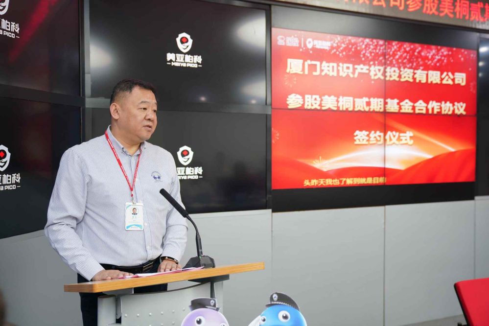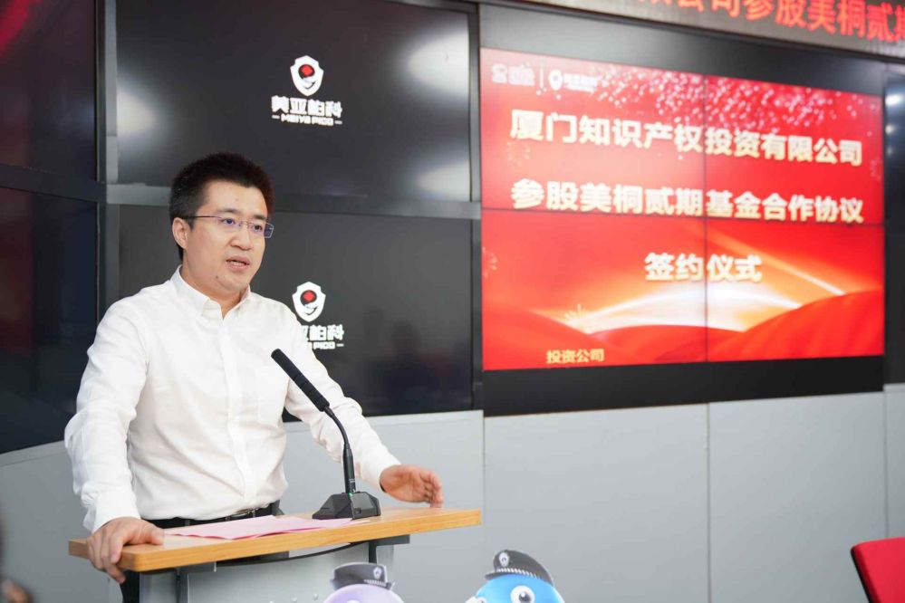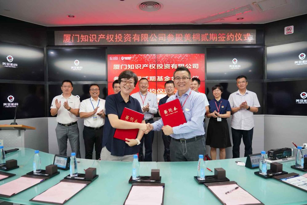 2020年9月9日,廈門知識產(chǎn)權(quán)投資有限公司參股美桐貳期基金簽約儀式在美亞柏科總部大樓舉辦。廈門市市場監(jiān)督管理局黨組成員、二級巡視員盧琳兵、國投智能戰(zhàn)略投資部總經(jīng)理涂崢、美亞柏科董事長滕達(dá)出席儀式并致辭??萍技瘓F(tuán)黨總支書記、董事長謝勇堅(jiān),美亞柏科黨委書記、總裁申強(qiáng)、美亞柏科執(zhí)行總裁欒江霞、美亞基金總經(jīng)理孫萬營、廈門市市場監(jiān)督管理局(知識產(chǎn)權(quán)局)知識產(chǎn)權(quán)運(yùn)用促進(jìn)處負(fù)責(zé)人郭永明、知識產(chǎn)權(quán)運(yùn)用促進(jìn)處二級調(diào)研員林志堅(jiān)、知識產(chǎn)權(quán)投資公司副總經(jīng)理張?bào)薜瘸鱿⒁娮C簽字儀式。