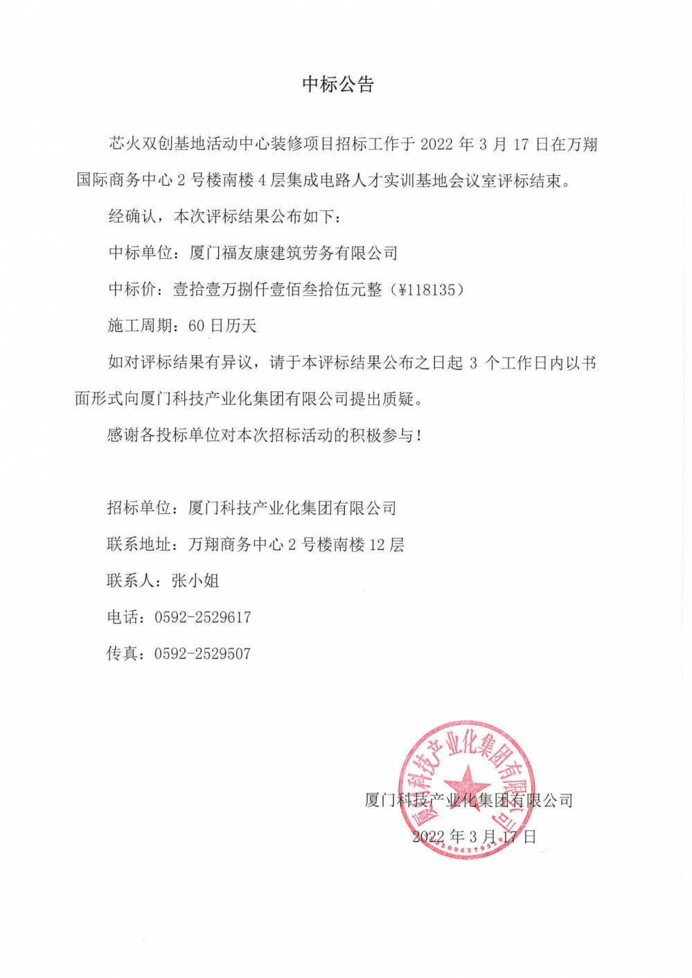 中標(biāo)公告(集成電路人才實訓(xùn)基地會議室)